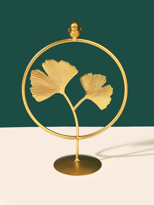 Metal Leaf Statue Ginkgo Biloba With Gold Bird