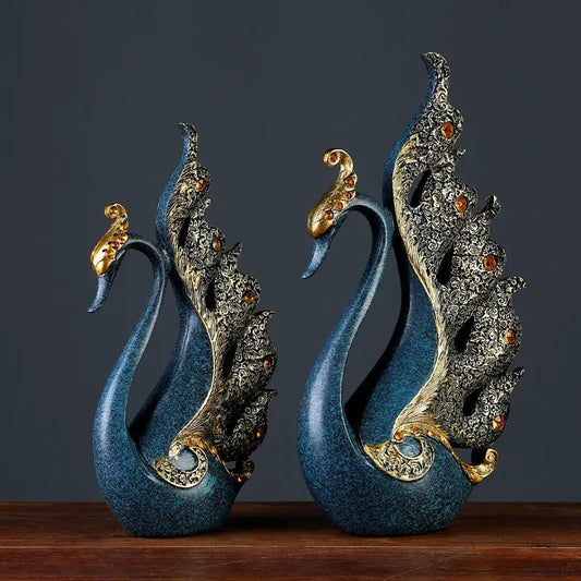 Antique Resin Blue set Swan Planter
